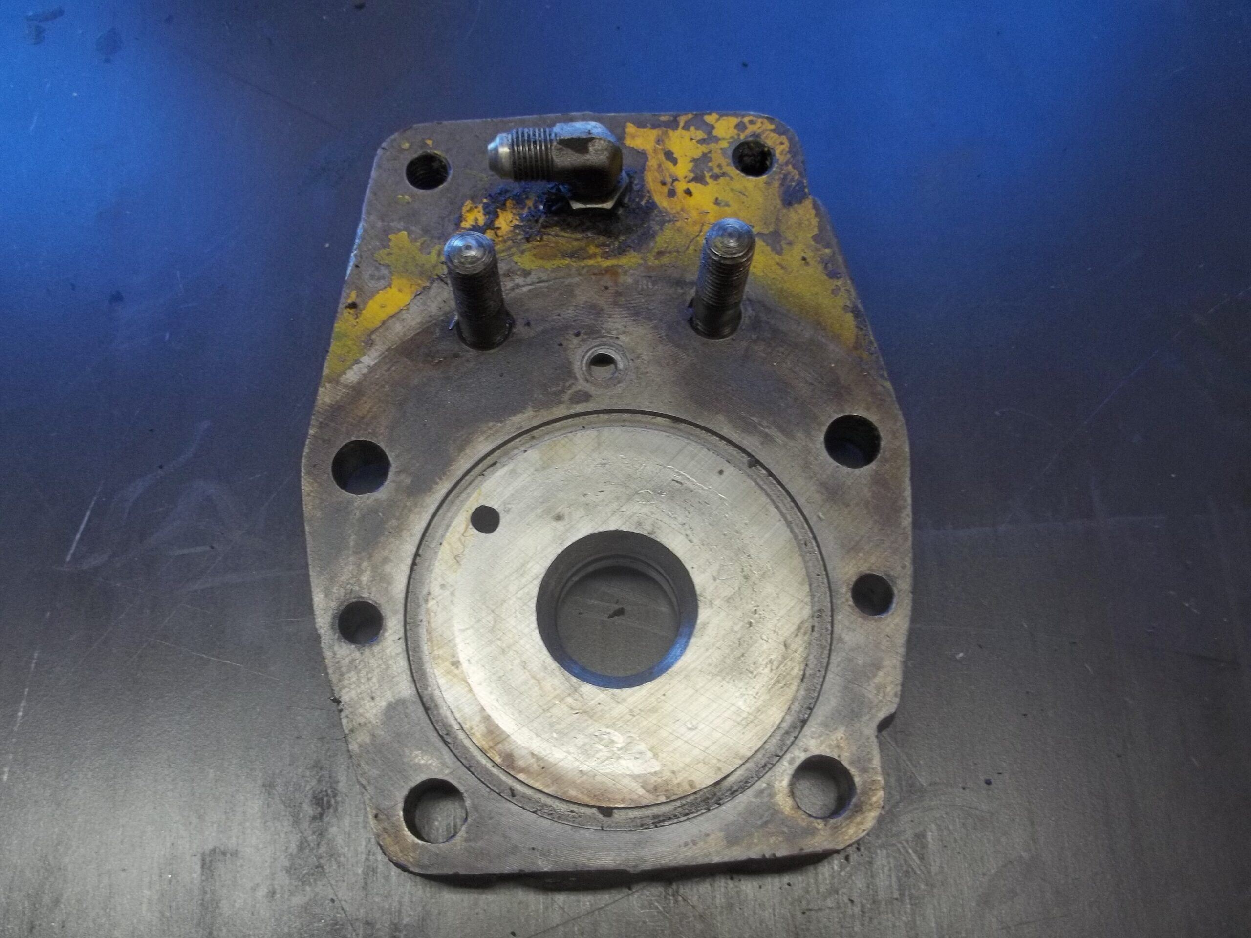 Steering Valve Plate in Used condition with part number(s) AR44883 | R42707.Fits John Deere Skidder Model(s): 440 | 440A | 440B.